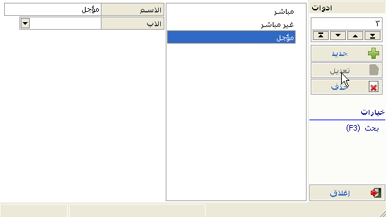 - الحالة (لائحة) (مباشر، غير مباشر، مؤجل)