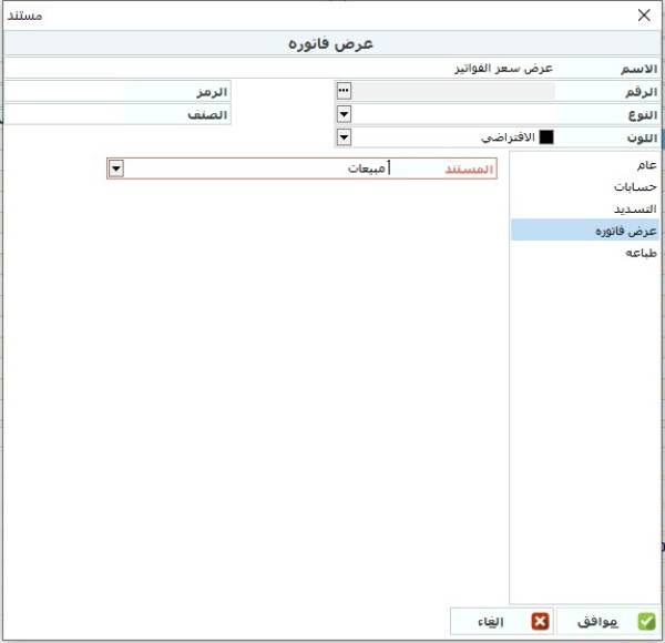 الاسم : اسم المستند (الاسم الذي سيظهر به المستند بالبرنامج) مثلا عرض سعر الفواتير.